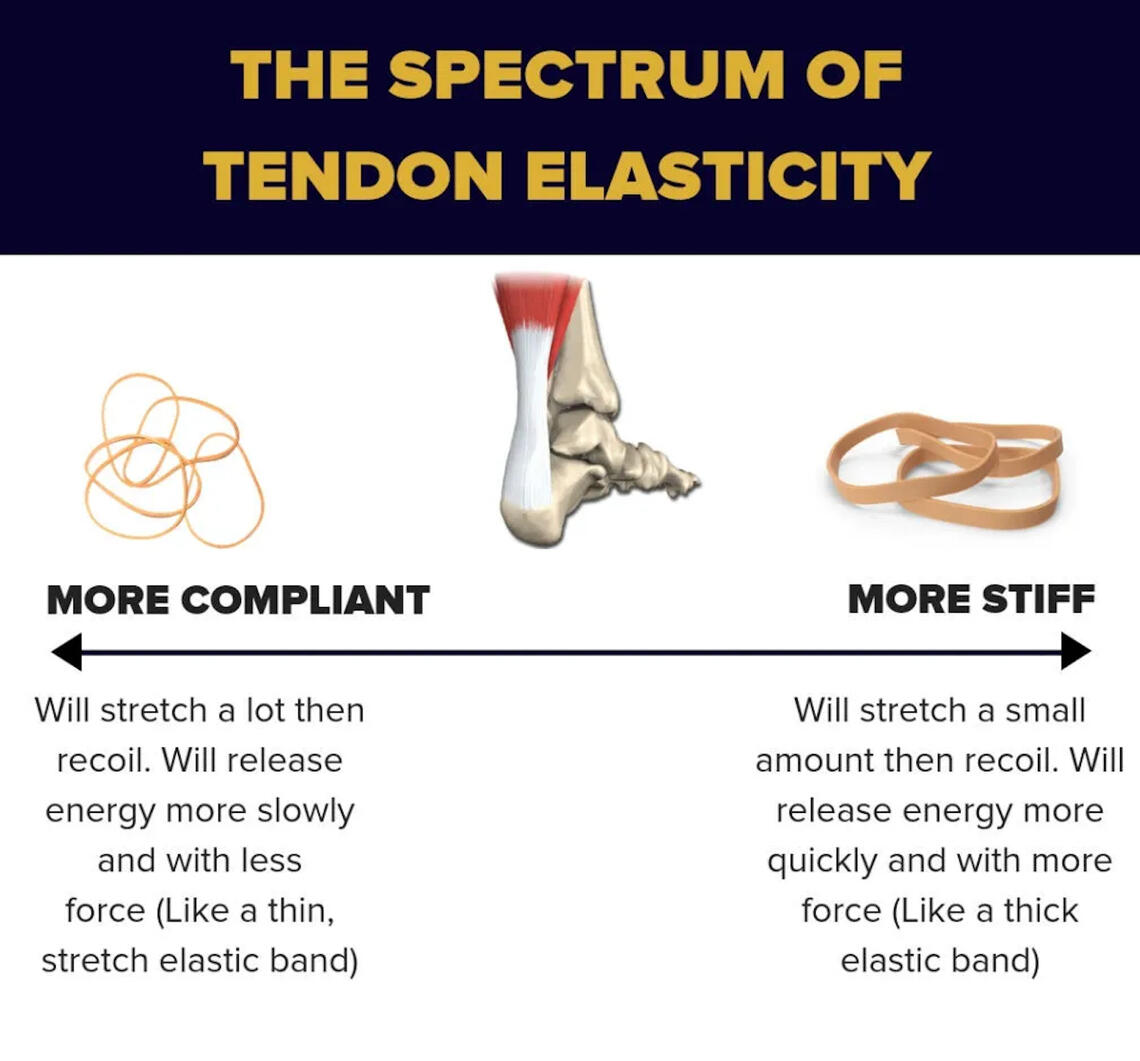 - Plyometric loading targets the tendon’s elastic capacity; training both slow plyometrics for brute force production and fast plyometrics to tap into the stretch-shortening cycles (SSC) are essential to meet the stiffness and elasticity demands of the Achilles tendon