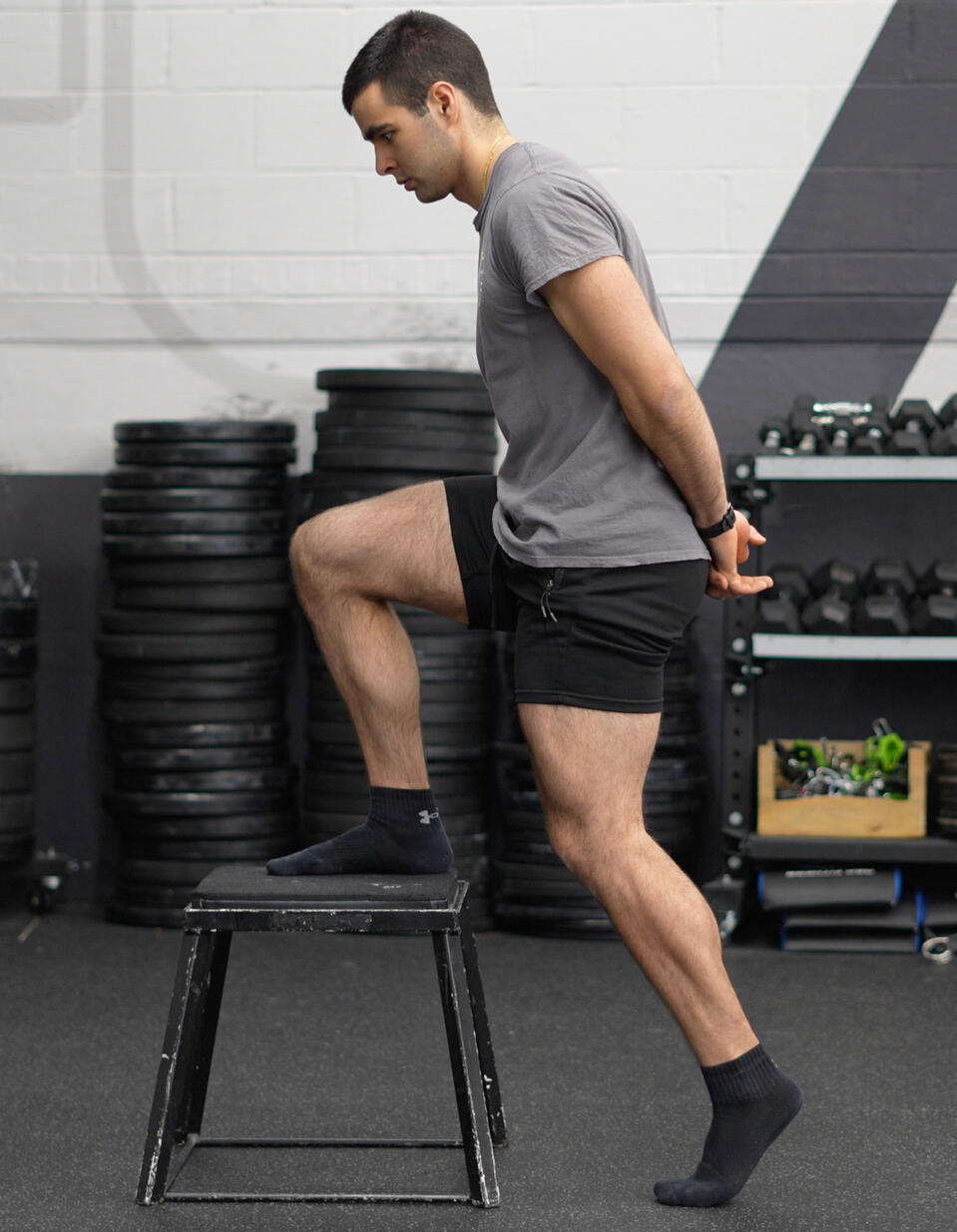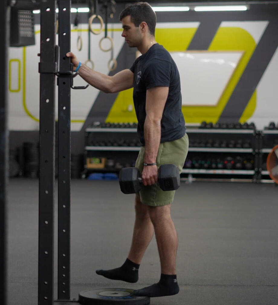 - 25 single leg (SL) heel raises w/ <20% height difference